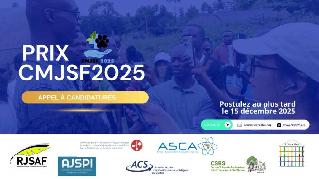 Candidatez au Prix de la meilleure enquête mis en place à la suite de la deuxième édition de la Conférence mondiale des journalistes scientifiques francophones (CMJSF), qui s’est tenue à Abidjan du 09 au 14 juin 2025 autour du thème « Une seule santé ».